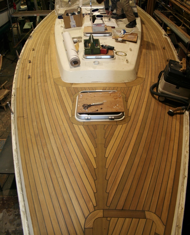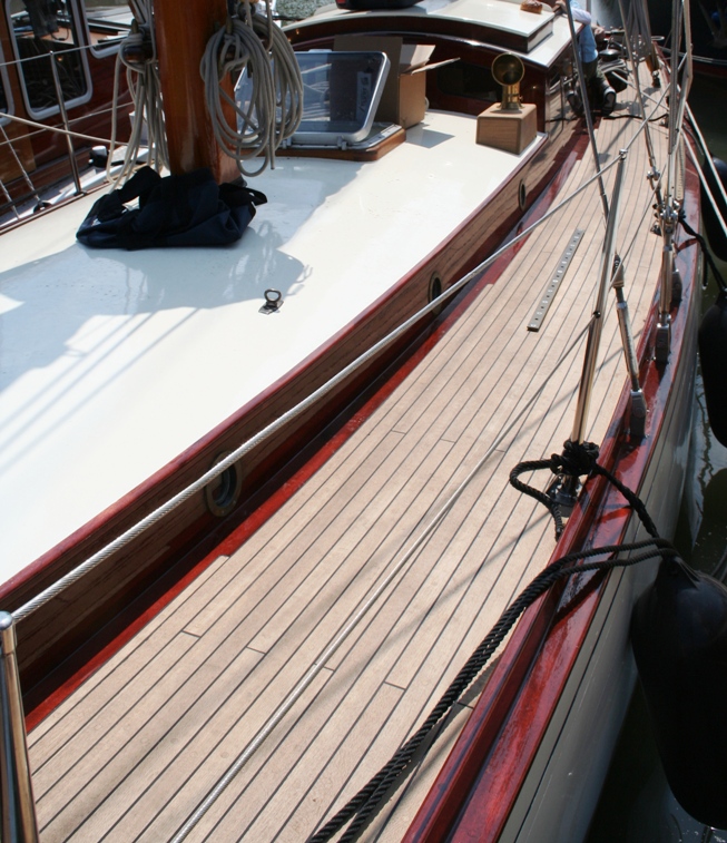 Yellow Cedar dek op 50m2 Seefahrtkreuzer Pinta