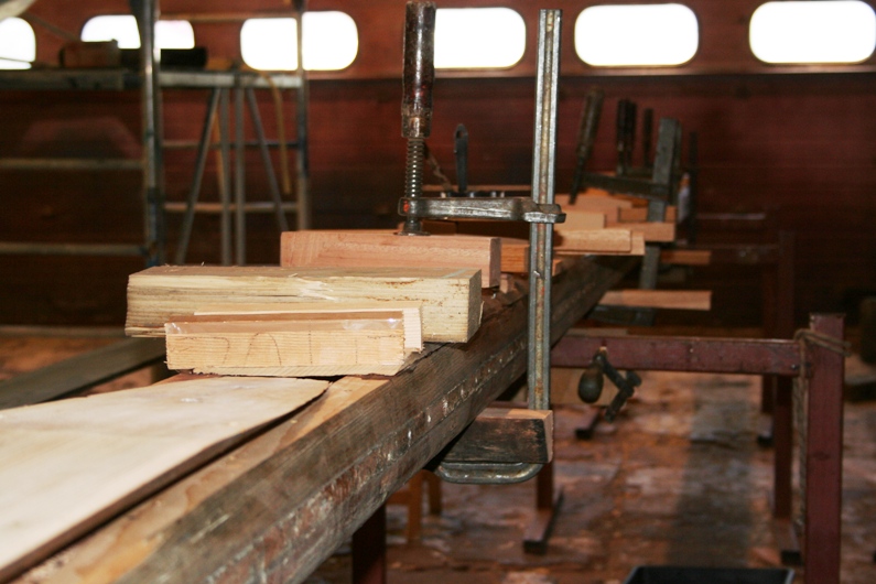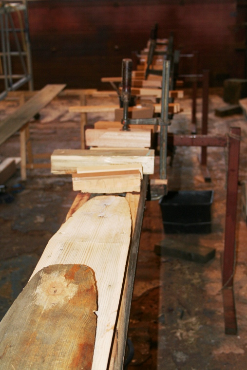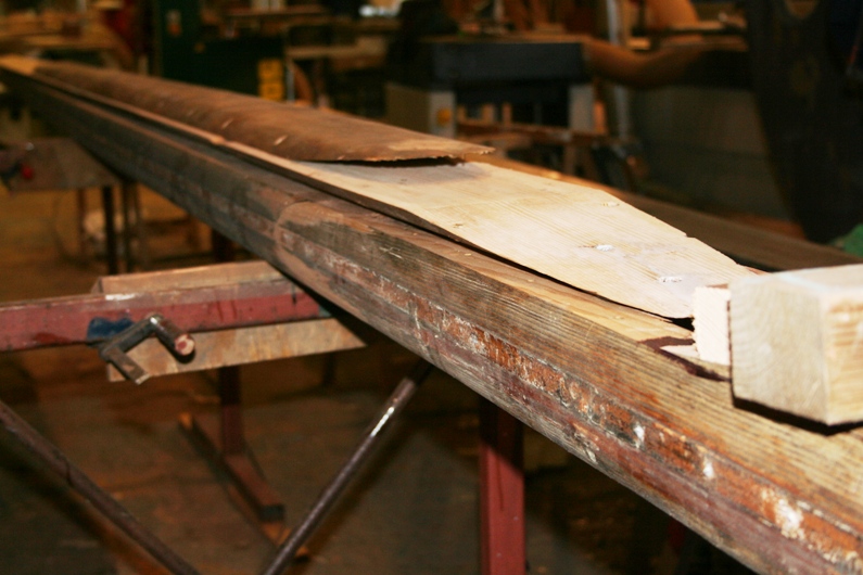Reparatie mast Blue Moon De lijmnaden van deze mast waren 'op'. Daarom is de mast geheel uit elkaar gehaald, schoongemaakt, en waar nodig gerepareerd. Vervolgens zijn de mastdelen weer deugdelijk verlijmd.