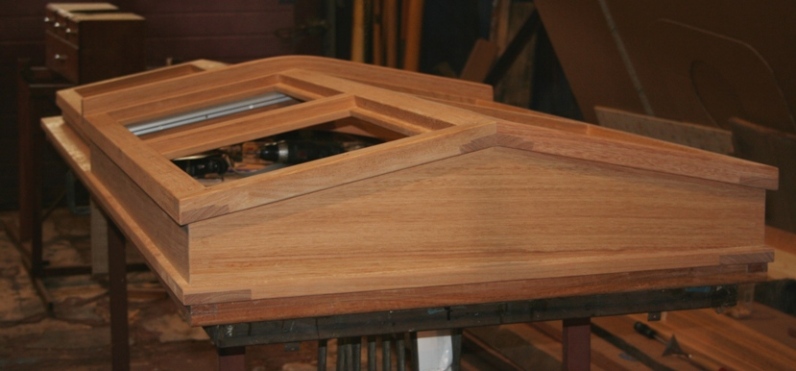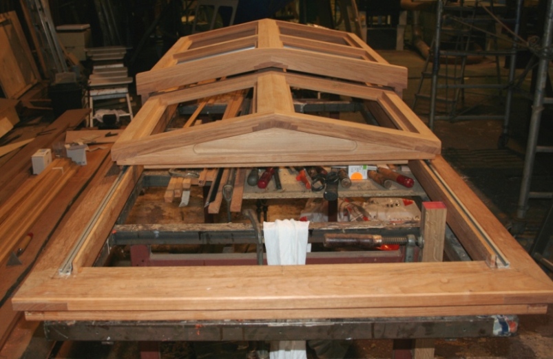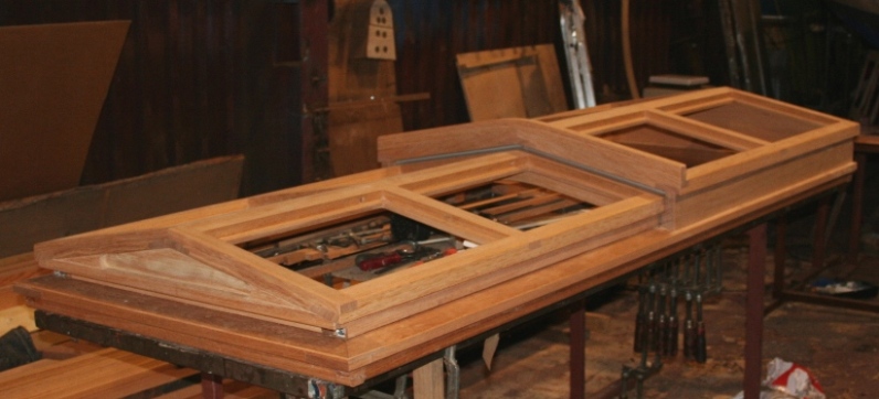 Dakluik met garage in hout Voor het huis van een klant is een groot dakluik gemaakt, wat in een garage opengeschoven kan worden. Veel meer licht in het huis, en met de aangepaste trap is het dakterras te betreden.