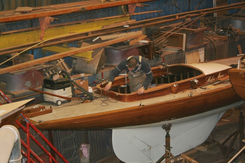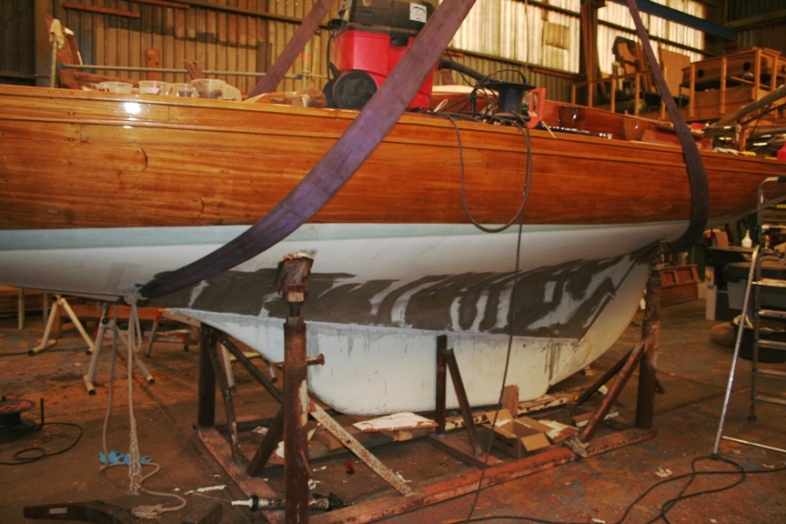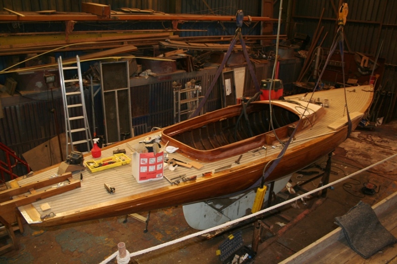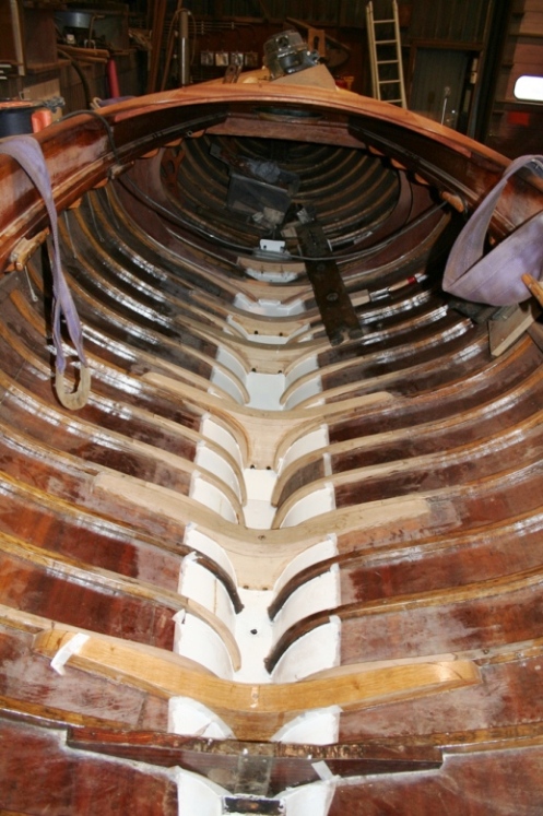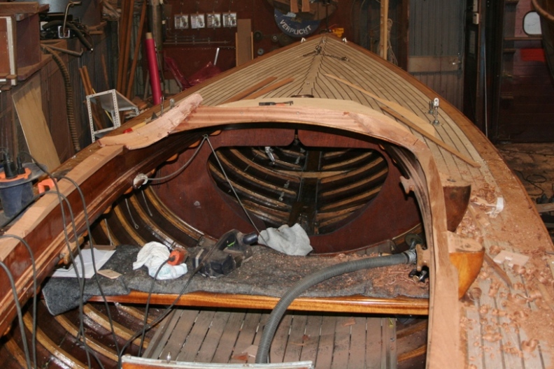 draak_halve_maen_kleinEen prachtige houten draak, gebouwd bij van der Stadt, waarvan de nodige spanten en wrangen gerepareerd zijn. Kielbouten en andere bouten zijn vervangen, er is een potdeksel op de kuiprand gemaakt, het mastspoor is vervangen, evenals de hennegatskoker.