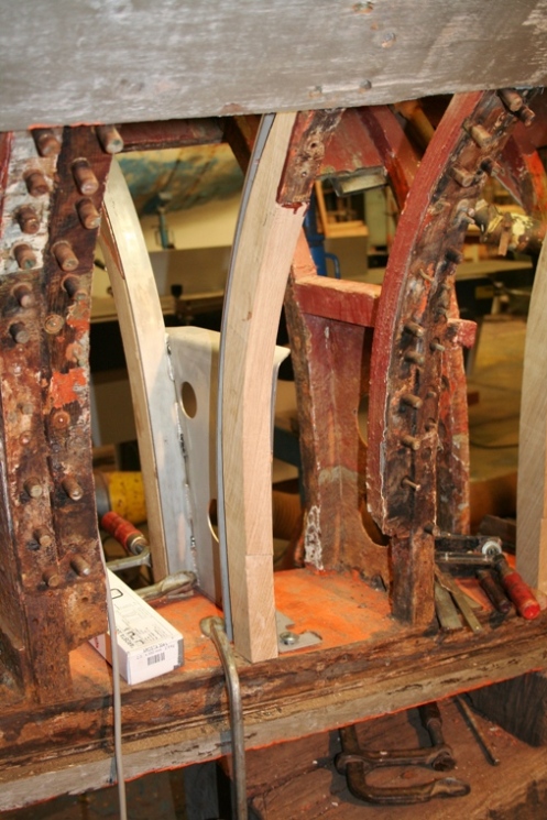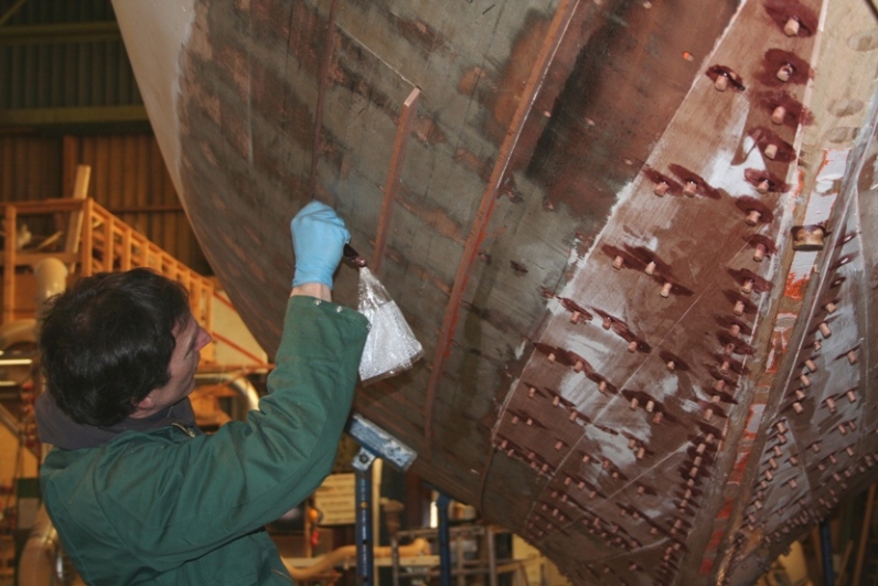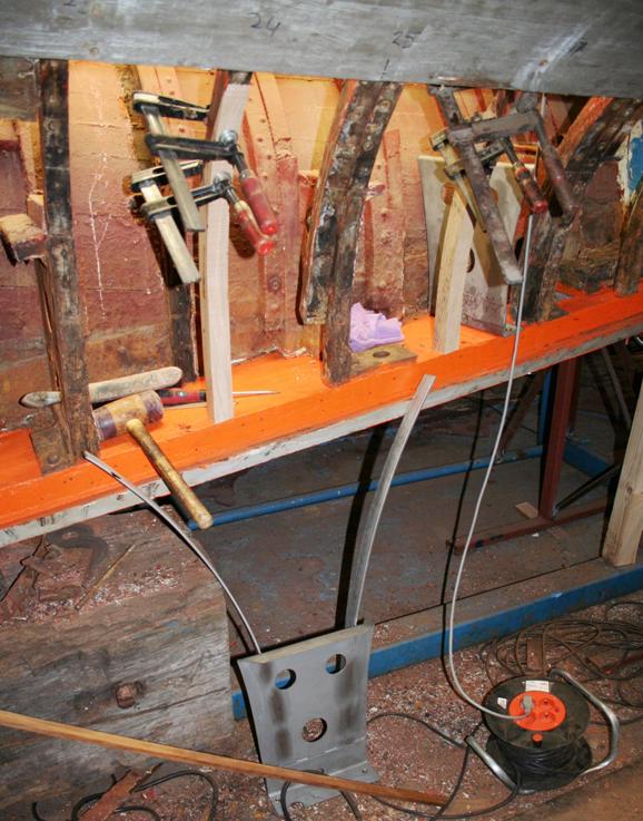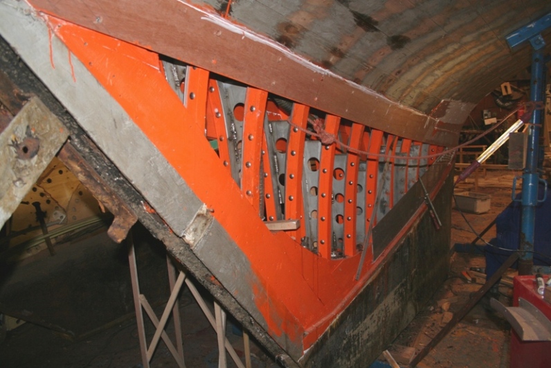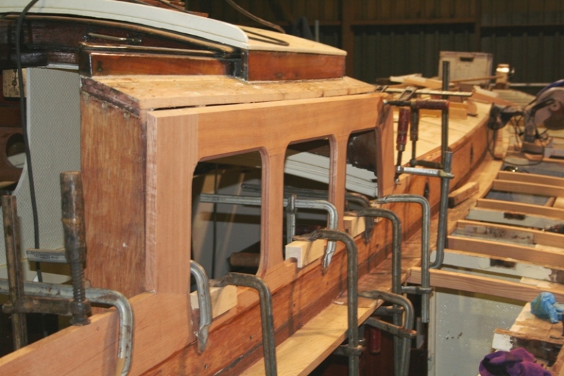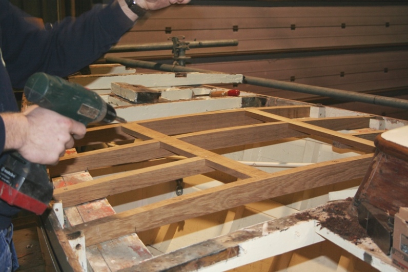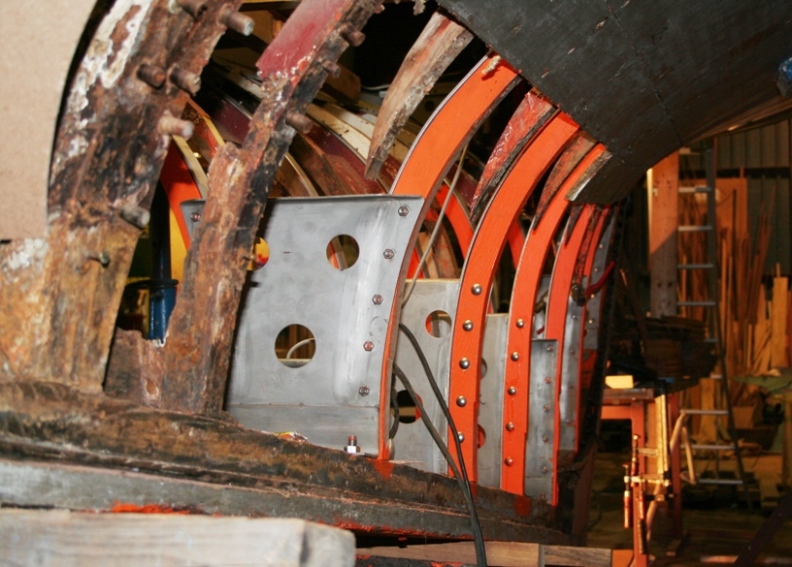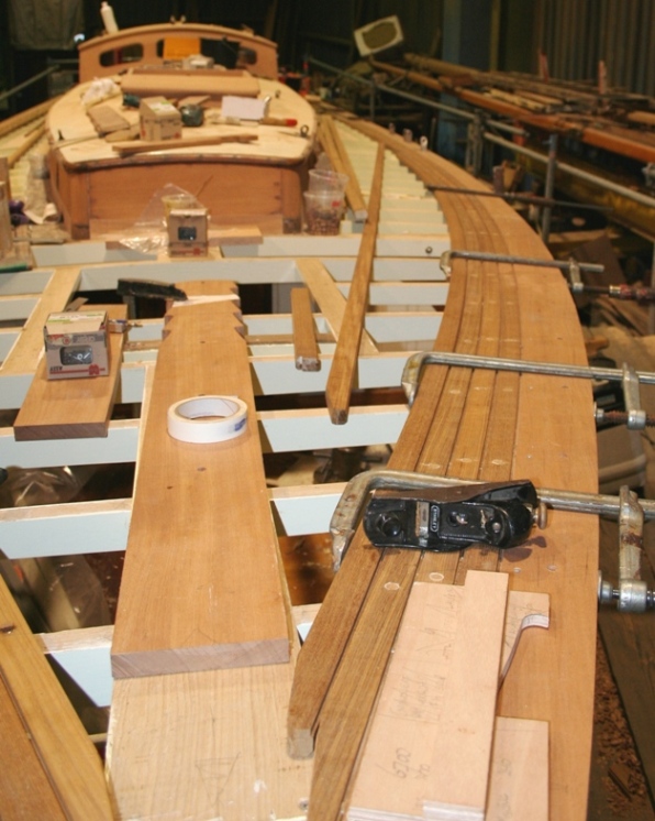 uitgevoerd. In het eerste winterseizoen is de romp grondig onderhanden genomen. Nieuwe wrangen en spanten, zowel rvs als hout. De stevenbalk is geheel vervangen tot de boeg. De verbindingsknie tussen kielbalk en stevenbalk is vervangen, evenals een flink aantal gangen uit het onderwaterschip. Gangen die niet vervangen zijn, zijn veelal wel aangeheeld dmv het inlijmen van splines. Een nieuw rvs mastspoor is geplaatst en de kielbouten zijn vervangen. Daarna heeft de Hamburg een zomer rustig kunnen varen, en was in het volgende winterseizoen de opbouw en het dek aan de beurt. De gehele dekconstructie is vervangen, en de opbouw is gerestaureerd en teruggebracht naar het oorspronkelijke ontwerp. Het geheel is afgemaakt met een massief teak dek. Deze winter zal een en ander in het interieur aangepast worden.