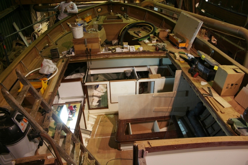 De huidige eigenaar van de Vrouwe Carolina kwam bij Benno om de mast en de giek van het schip weer opnieuw te laten verlijmen; beide helften kwamen los doordat de lijm 'op' was. Nadere inspectie van de Vrouwe zelf resulteerde in verdere gesprekken over de huidige kwaliteit van het schip. Constructief gezien waren vooral alle verbindende bouten en schroeven niet goed meer. Alle schroeven waarmee de spanten bevestigd zijn, zijn vervangen. Alle bouten van voor- en achtersteven en kielbalk zijn vervangen. Verder zijn een aantal wrangen vervangen, en enkele spanten gerepareerd. De gangen waren nog goed. Maar de dekconstructie had weer wel wat extra aandacht nodig. Waarna een nieuw plaatdek met epoxy coating gemonteerd is. Met daarop een nieuw teak dek. Constructief zijn verder nog het mastspoor en de motorfundatie vernieuwd.