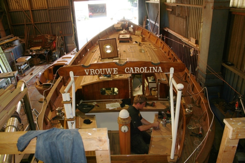 Heel mooi is het nieuwe boeisel en het nieuwe berghout. De kuip is opnieuw opgebouwd, en de opbouw opgeknapt, zodat Vrouw Carolina werkelijk een plaatje is om te zien.